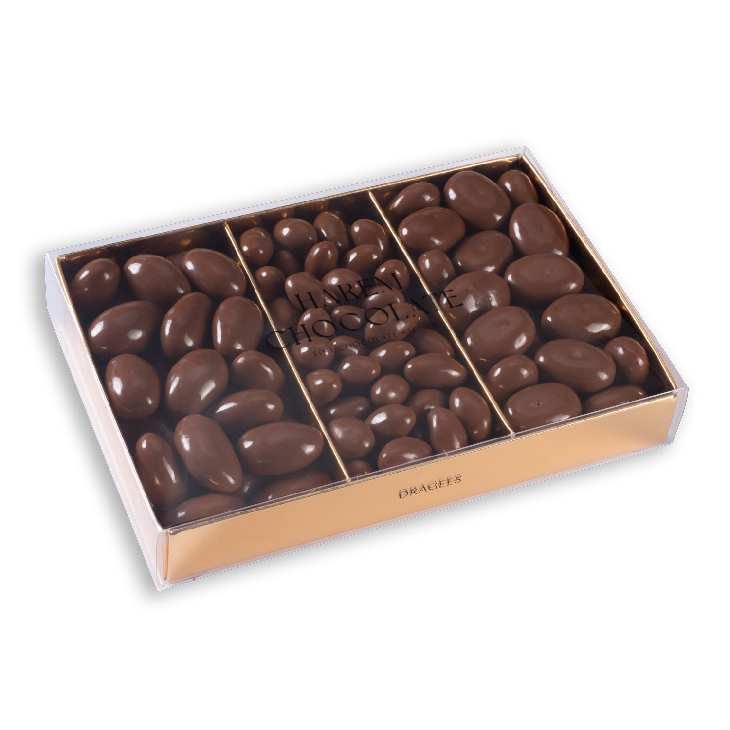 Carefully selected nuts and fruits come together with smooth milk and dark chocolate in this refined collection. From classic Pistachio, Almond, and Hazelnut dragees to unique flavors like Quince, each piece offers a balanced and delightful taste experience."