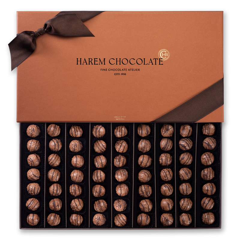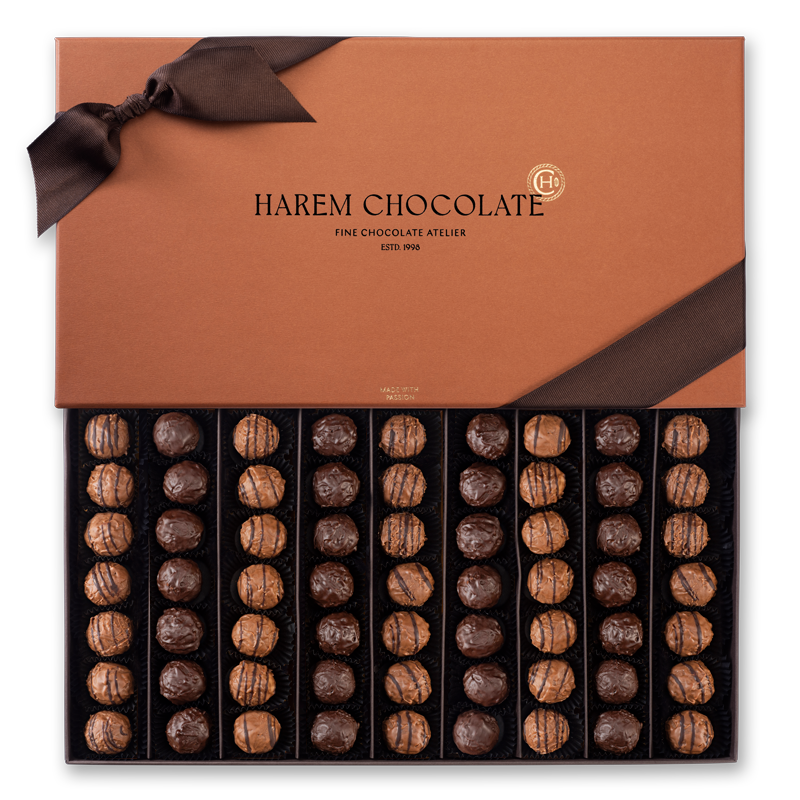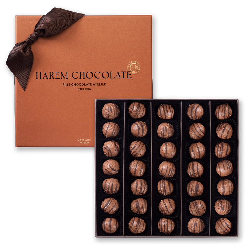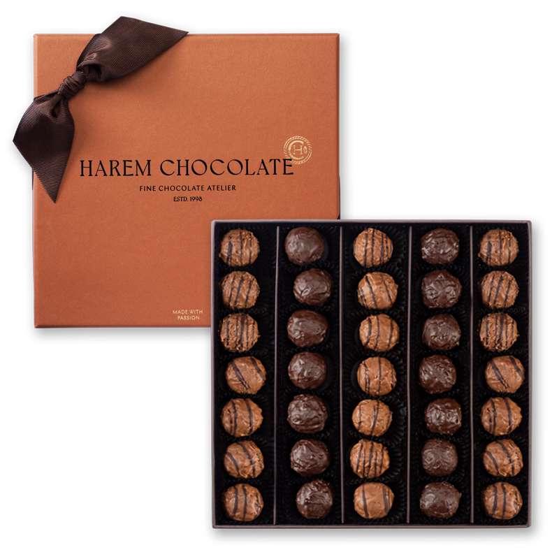 Discover the delicious truffle chocolates of Harem Chocolate, covered with milk and dark chocolate.