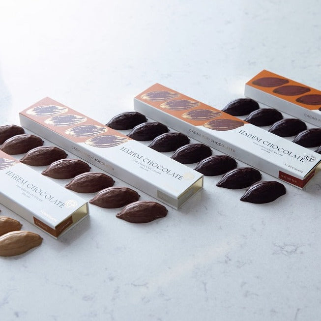 Inspired by the natural form of the cacao pod, this collection takes you on a rich and refined chocolate journey. From silky Milk Chocolate to indulgent Caramel, and from balanced 50% Dark to bold 80% and pure 100% Cacao — there’s a flavor for every palate. Thoughtfully crafted for those who seek both variety and intensity, the Cacao Pod Collection invites you to explore the true essence of cacao.